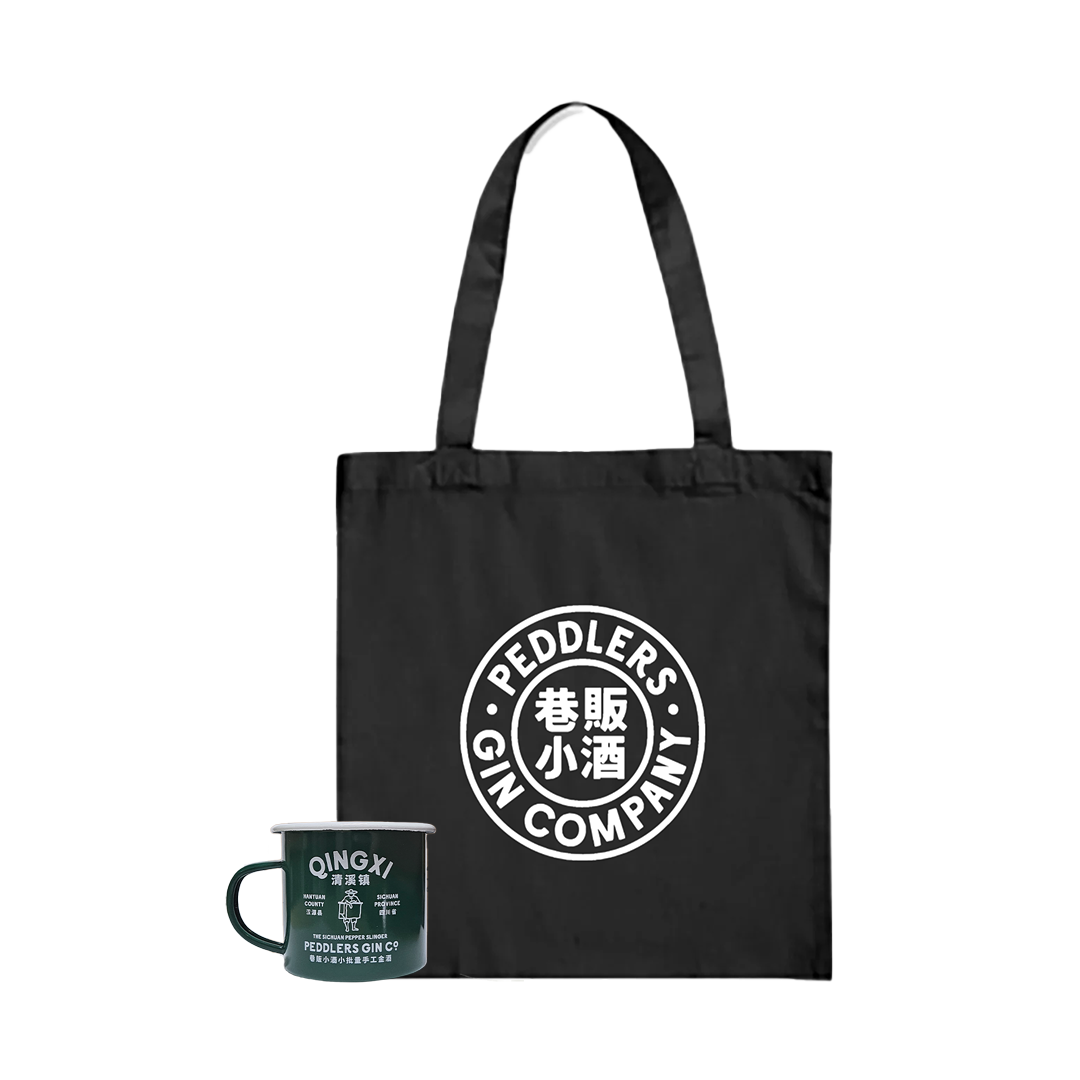 Plus a couple of great other goodies to bring everything together and really style your love for gin: A Peddlers Gin Co. tote bag for carrying other goodies and an enameled tin mug to enjoy your G&T in a more alternative fashion.