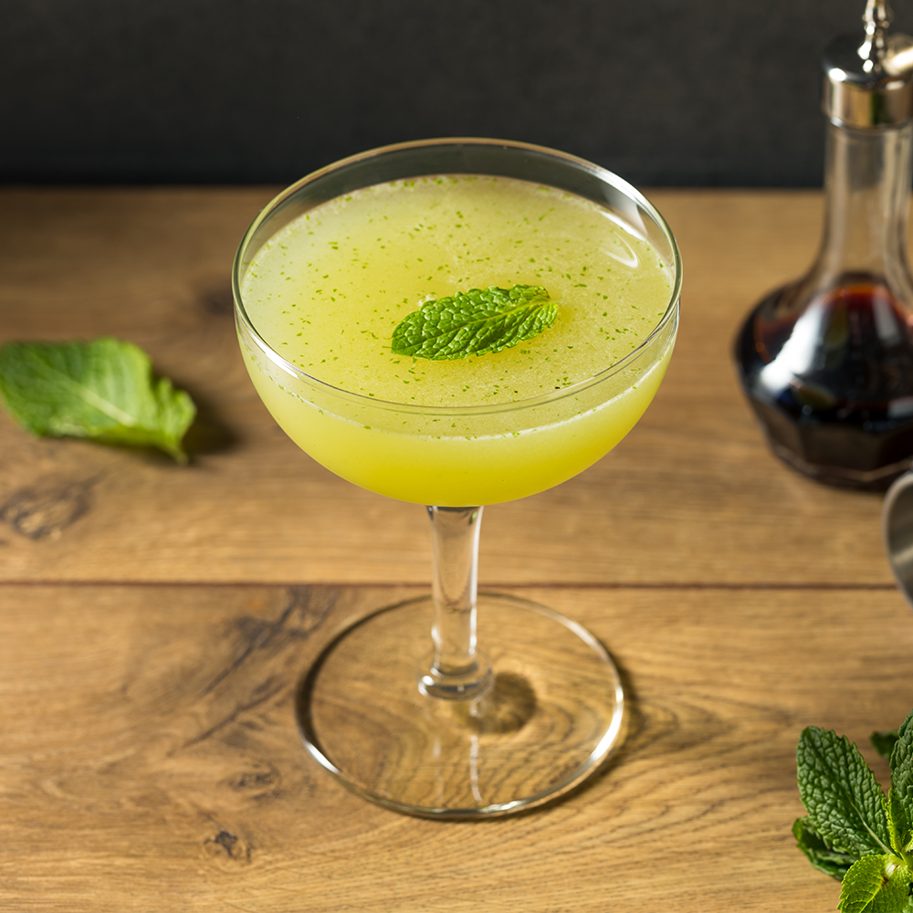 - Strain into a chilled coupe glass