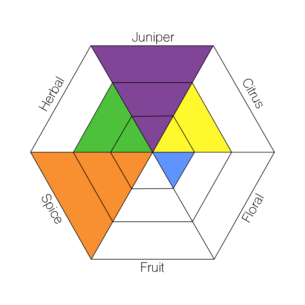 The main taste profiles in gin are: Juniper, Citrus, Floral, Fruit, Spice, and Herbal.
