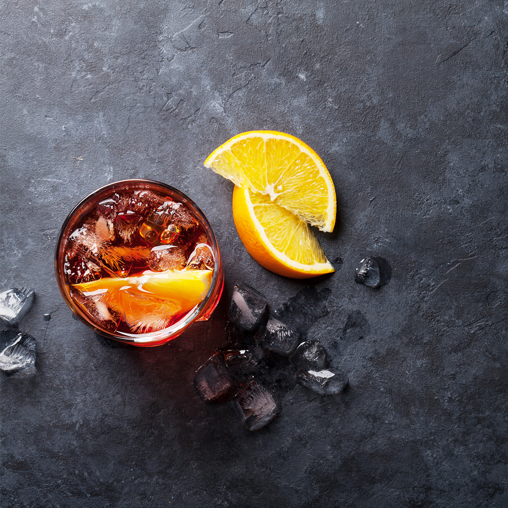 - Pour the Campari, gin, and vermouth into a tumbler filled with ice cubes