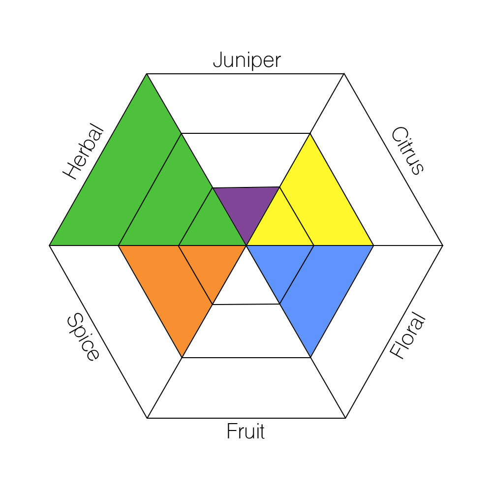 The main taste profiles in gin are: Juniper, Citrus, Floral, Fruit, Spice, and Herbal.