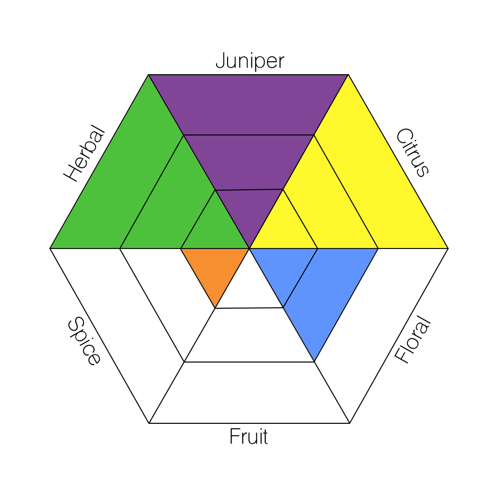 The main taste profiles in gin are: Juniper, Citrus, Floral, Fruit, Spice, and Herbal.