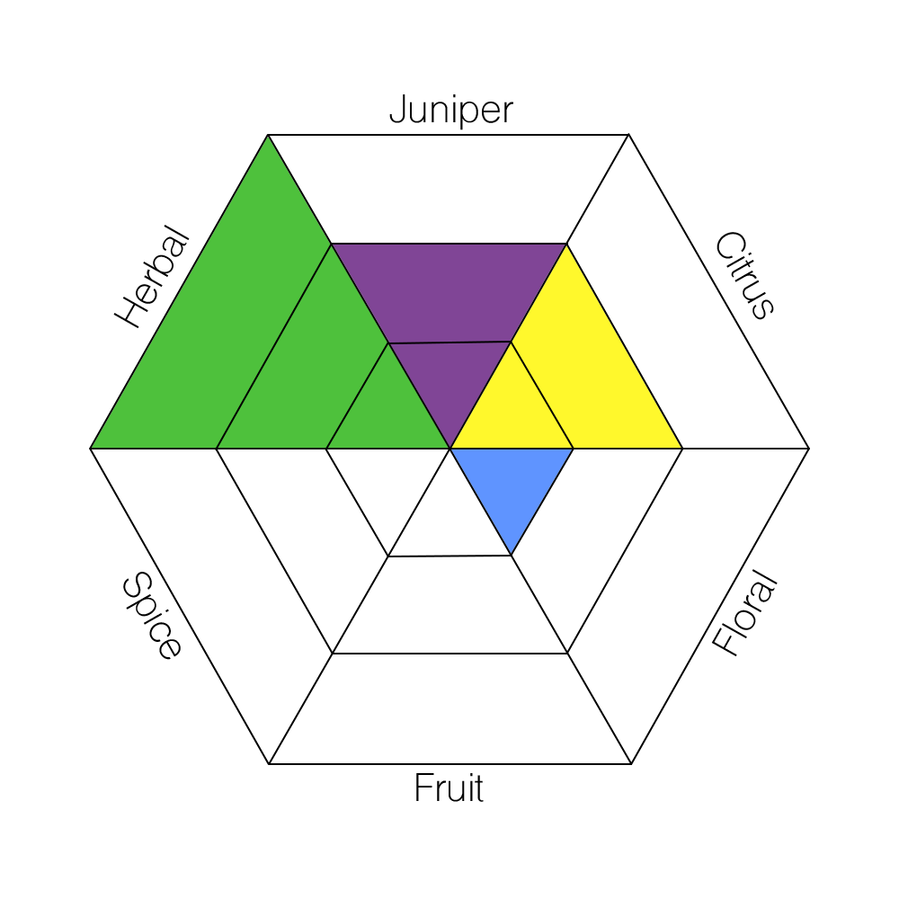The main taste profiles in gin are: Juniper, Citrus, Floral, Fruit, Spice, and Herbal.