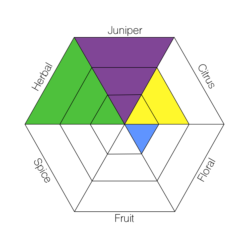 The main taste profiles in gin are: Juniper, Citrus, Floral, Fruit, Spice, and Herbal.